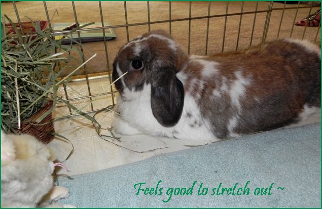 She especially likes to be petted - lots of petting, especially while she is eating a treat! Foster mom holds and pets her, and she "tolerates" the hugga-bunny behavior well. She's never nippy. Yet she's a spunky girl at age three. Lots to do, lots to explore.